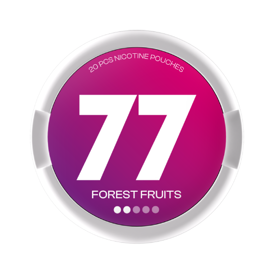 77 Forest Fruits Light är en tobaksfri nikotinpåse med smak av skogsbär. Portionerna är helvita och framtagna i Slim-format för en diskret passform under läppen. Varje påse innehåller 5,2 mg nikotin, vilket motsvarar 8 mg/g, och klassas som en låg nikotinstyrka. Produkten tillhör kategorin vitt snus.