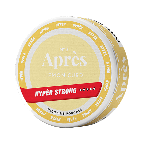 APRÈS Lemon Curd Hypèr Strong är ett vitt snus från varumärket Après, tillverkat av APRÈS Nicotine AB. Produkten tillhör kategorin nikotinpåsar och innehåller nikotin men ingen tobak. Portionerna är helvita och utformade i Slim-format, vilket innebär en smalare profil jämfört med traditionellt snus. Produkten klassificeras som hyper strong baserat på sin nikotinhalt.