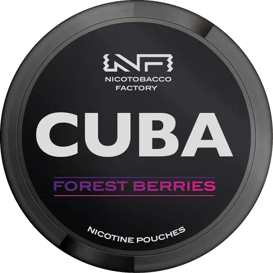 CUBA Black Forest Berries är en tobaksfri nikotinpåse med smak av skogsbär. Portionerna är formgivna i ett smalt format som gör dem diskreta under läppen. Varje påse innehåller 43 mg nikotin, vilket motsvarar 43 mg/g, och nikotinstyrkan räknas som mycket hög. Produkten tillhör kategorin vitt snus.