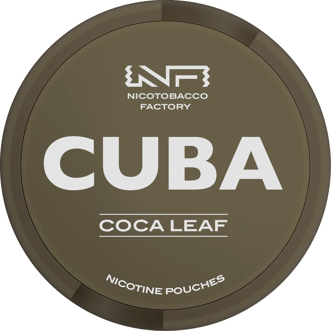 CUBA Coca Leaf är en tobaksfri nikotinpåse med smak som associeras med kokablad. Portionerna är utformade i slimformat för att ligga diskret under läppen. Varje påse innehåller 32,5 mg nikotin, vilket motsvarar 50 mg/g, och nikotinstyrkan tillhör den extra starka kategorin. Produkten klassificeras som vitt snus.