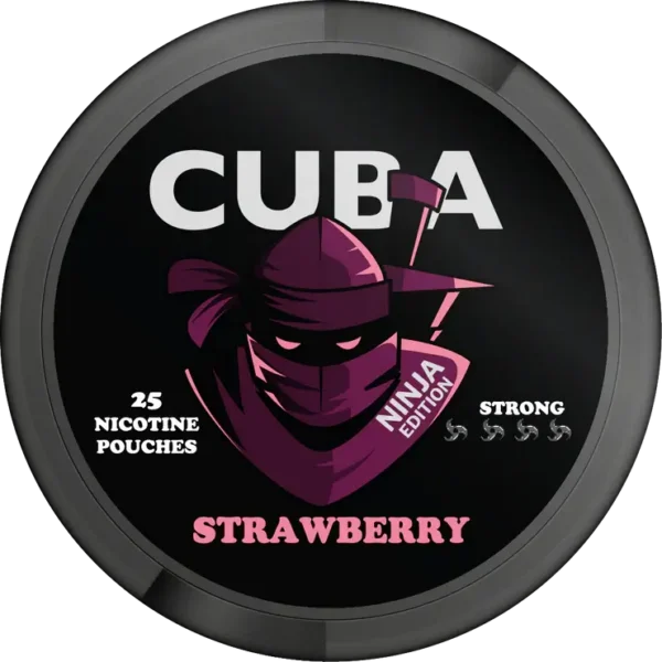 CUBA Ninja Strawberry är en tobaksfri nikotinpåse med smak av jordgubb. Portionerna är framtagna i slimformat för en diskret placering under läppen. Varje påse innehåller 15 mg nikotin, vilket motsvarar 30 mg/g, och nikotinstyrkan räknas till den högre kategorin. Produkten ingår i segmentet vitt snus.
