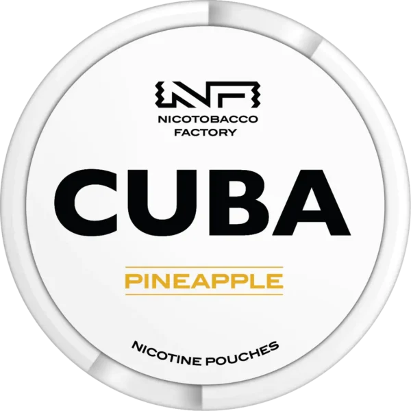 CUBA White Pineapple är en tobaksfri nikotinpåse med smak av ananas. Portionerna är utformade i slimformat för en diskret placering under läppen. Varje påse innehåller 16 mg nikotin, vilket motsvarar 16 mg/g, och nikotinstyrkan klassas som hög. Produkten klassificeras som vitt snus.