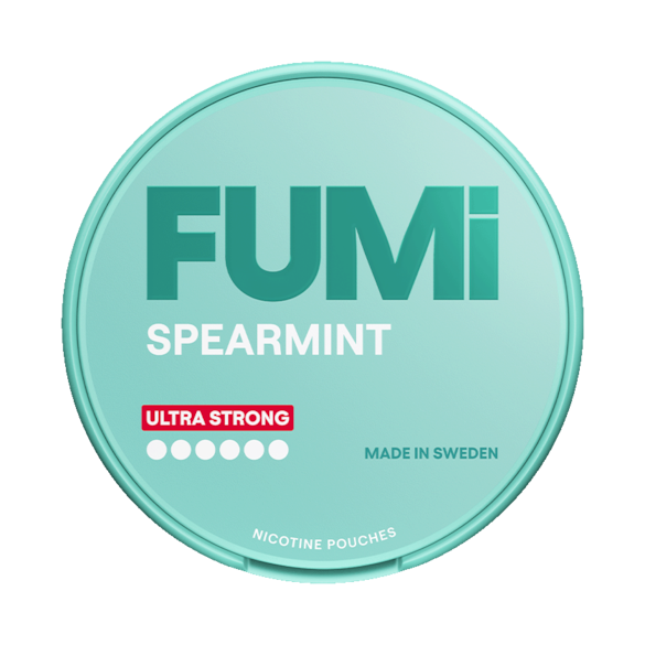 FUMi Spearmint Ultra Strong är nikotinpåsar med mintsmak i slim-format. Smaken anges tidigt och har en tydlig mint karaktär. Produkten är tobaksfri och tillverkas av Helix Sweden under varumärket FUMi. Portionerna levereras i slim-format med smal utformning för placering under läppen. Varje dosa innehåller 20 nikotinpåsar. Nikotinhalten är 15 mg per prilla och 21,4 mg nikotin per gram. Produkten är klassificerad som ultra stark baserat på nikotininnehållet per prilla. FUMi Spearmint Ultra Strong ingår i FUMis sortiment av tobaksfria nikotinpåsar och är framtagen utan användning av tobaksblad.