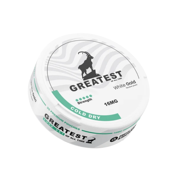 GREATEST Cold Dry 16mg är en tobaksfri nikotinpåse med kall mintkaraktär. Portionerna är designade i slimformat för att placeras diskret under läppen. Varje prilla innehåller 12 mg nikotin, vilket motsvarar 16 mg/g, och nikotinstyrkan klassas som hög. Produkten ingår i kategorin vitt snus.