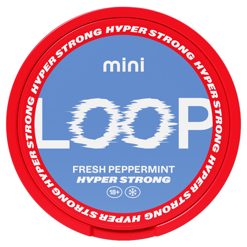 LOOP Fresh Peppermint Hyper Strong Mini är en tobaksfri nikotinpåse från Loop, tillverkad av Another Snus Factory i Sverige. Produkten levereras i mini-format och erbjuder en sval och ren pepparmintsmak. Nikotinhalten är 10,5 mg per prilla och 25 mg per gram, vilket klassificerar produkten som extra stark. Varje dosa innehåller 20 påsar och är helt fri från tobaksblad – ett starkt val för dig som söker hög nikotinhalt i ett extra diskret mini-format.