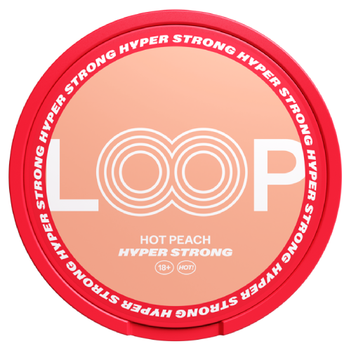 LOOP Hot Peach Hyper Strong är en tobaksfri nikotinpåse från Loop, tillverkad av Another Snus Factory i Sverige. Produkten levereras i slim-format och erbjuder en varm och fruktig persikosmak. Nikotinhalten är 15,6 mg per prilla och 25 mg per gram, vilket klassificerar produkten som extra stark. Varje dosa innehåller 20 påsar och är helt fri från tobaksblad – ett starkt val för dig som söker hög nikotinhalt med en fruktig smakupplevelse.