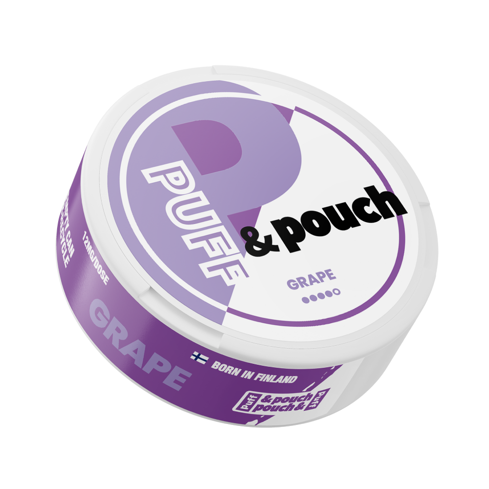 Puff & Pouch Grape 12mg är en tobaksfri nikotinpåse med druvsmak. Portionerna är helvita och framtagna i slimformat för att ligga diskret under läppen. Nikotinhalten ligger på 12 mg per påse, vilket motsvarar 16 mg/g. Produkten ingår i Puff & Pouch-serien, som erbjuder tobaksfria nikotinpåsar i flera olika styrkor och smaker inom vitt snus.