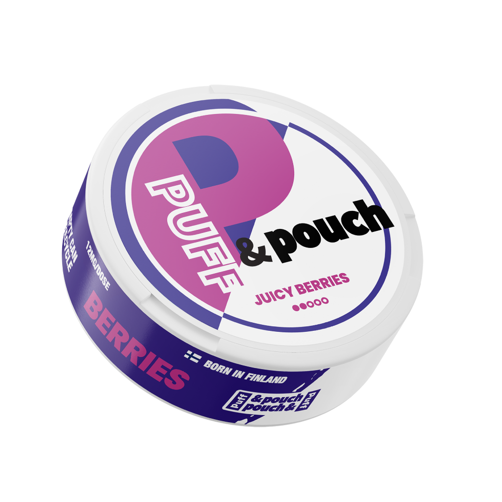 Puff & Pouch Juicy Berries 12mg är en tobaksfri nikotinpåse med smak av bär. Portionerna är helvita och framställda i slimformat för att ligga diskret under läppen. Nikotinhalten är 12 mg per påse, vilket motsvarar 16 mg/g. Variationen ingår i Puff & Pouch-serien, som omfattar tobaksfria nikotinpåsar i flera olika styrkor och smaker inom vitt snus.