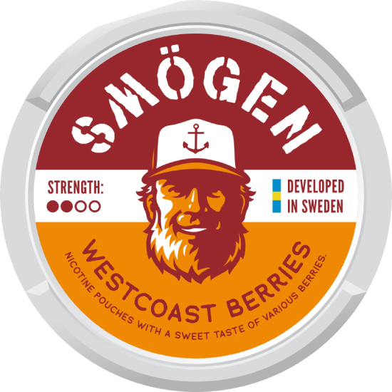 SMÖGEN Westcoast Berries är en tobaksfri nikotinpåse med smak av bär. Portionerna är helvita och utformade i slimformat för en diskret placering under läppen. Nikotinhalten är 8 mg per påse, vilket motsvarar 13 mg/g. Produkten ingår i SMÖGEN-sortimentet, som omfattar tobaksfria nikotinpåsar i flera olika styrkor och smaker inom vitt snus.