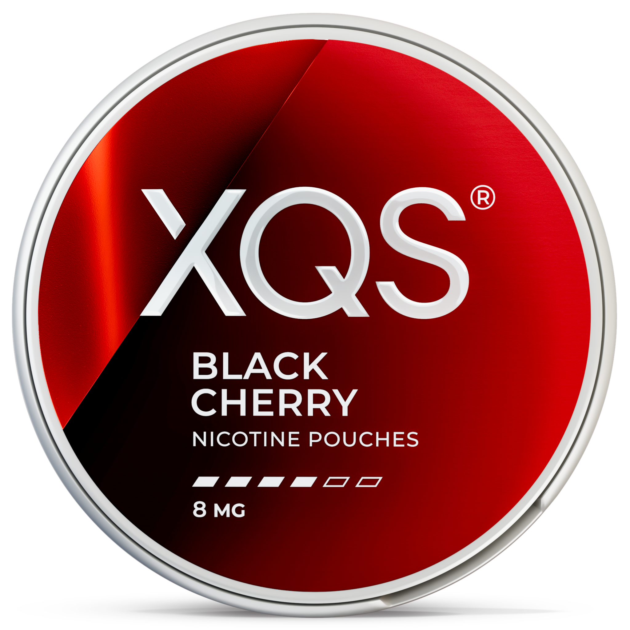 XQS Black Cherry Strong levereras i slimformat, en smal och ergonomisk påse som sitter diskret och bekvämt under läppen. Burken innehåller 15 g och 20 påsar, helt vita och tobaksfria, tillverkade med nikotin av farmaceutisk kvalitet för en jämn och pålitlig frisättning av den fruktiga körsbärssmaken och nikotinet oavsett situation.