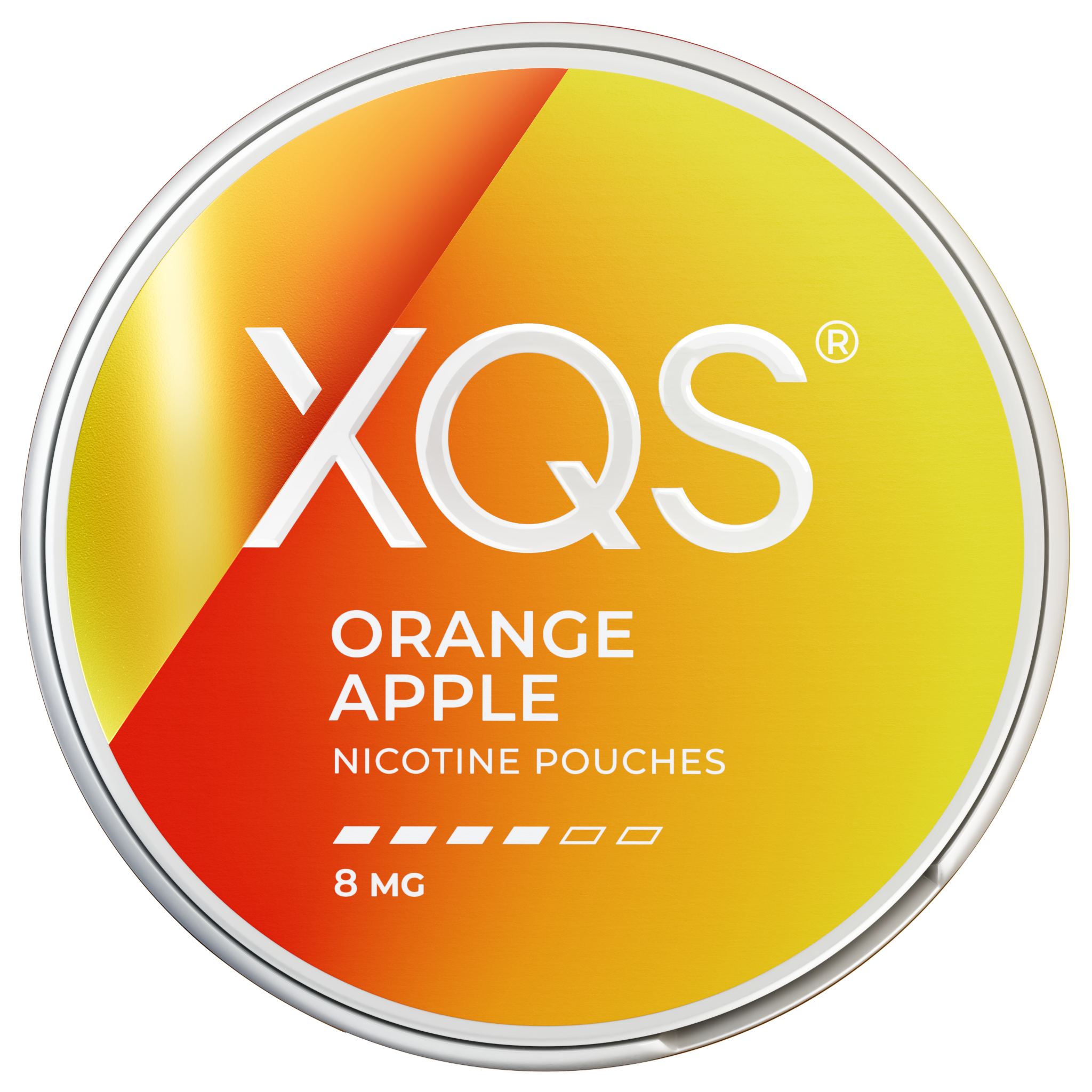 XQS Orange Apple Strong är en tobaksfri nikotinpåse som kombinerar apelsin och äpple i en balanserad smakprofil. Portionerna är helvita. Varje prilla innehåller 8 mg nikotin och totalhalten uppgår till 16 mg/g, vilket placerar den i kategorin stark styrka. Formatet är slim, utformat för att ligga diskret under läppen.